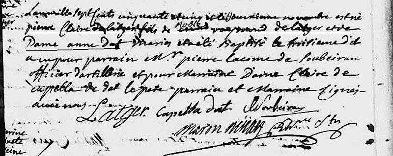 — Marie Anne de Lacger, née le 2 juin 1784.