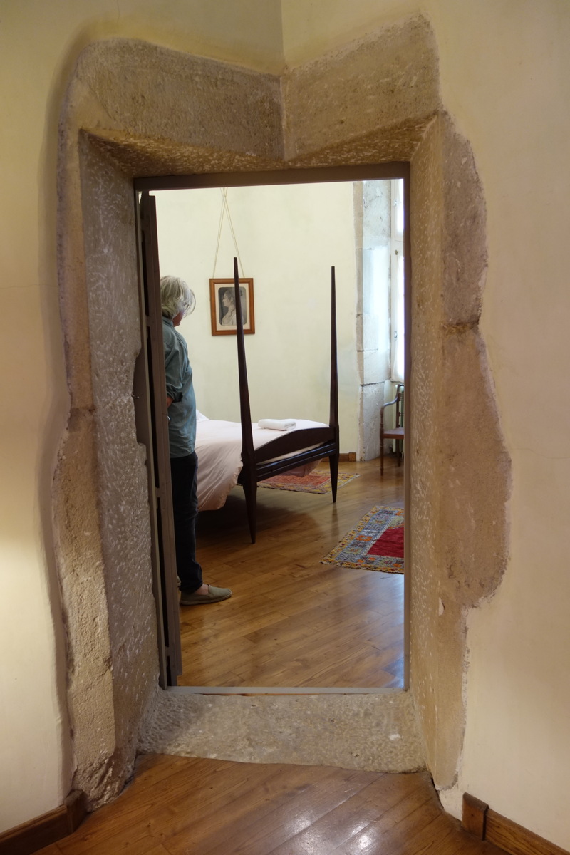Détail d'une autre porte de circulation, toujours dans les caves du château. À noter, le chanfrein assorti d'un congé.