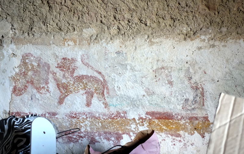 Reste de porte ancienne dans le hall d'entrée du château. II. À l'étage, la salle « des chevaliers » Restes de fresques dans la salle « des chevaliers ». III. Vers les chambres IV. Au grenier Reste de fresques. V. Vers l'autre façade du château Au pied du côté droit de la tour principale. Au pied de la façade est du château. Au pied de la tour nord-est du château. Lieu agréable pour s'attarder dans la douceur du soir, façade nord et terrasse du château. 1. Cf. Archives départementales de la Haute-Garonne. Fonds de Malte. Commanderie de Plaigne. Christine Belcikowski. Mystères dans l’histoire de la famille de Béon Cazaux et dans celle de la commanderie de Plaigne.