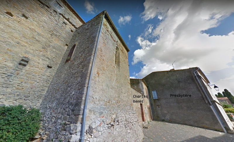Ci-dessus, de gauche à droite : vestiges de l'ancienne maison de la communauté ; ancienne maison du sieur [Charles] Benet, vue du côté de la rue du Presbytère.