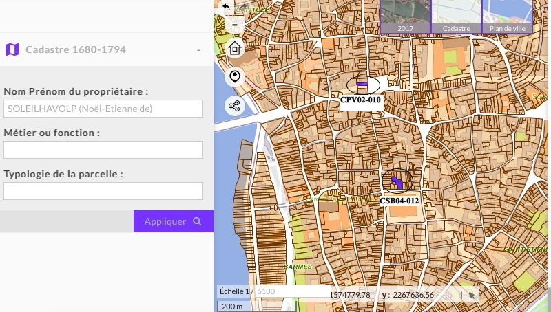 12. UrbanTist +. Recherche. Cadastre 1680-1794.
